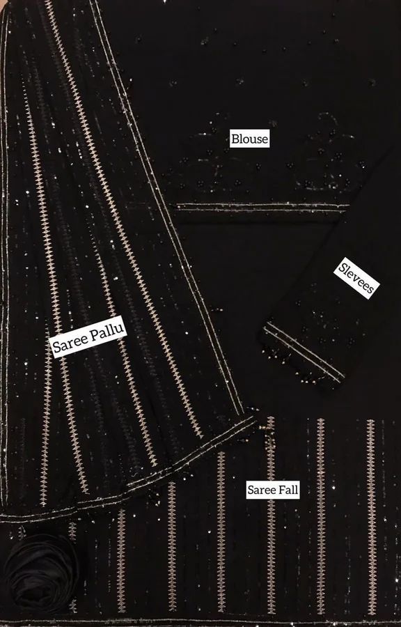 Pallu: Embroidered with punch pearl work & hanging tussles